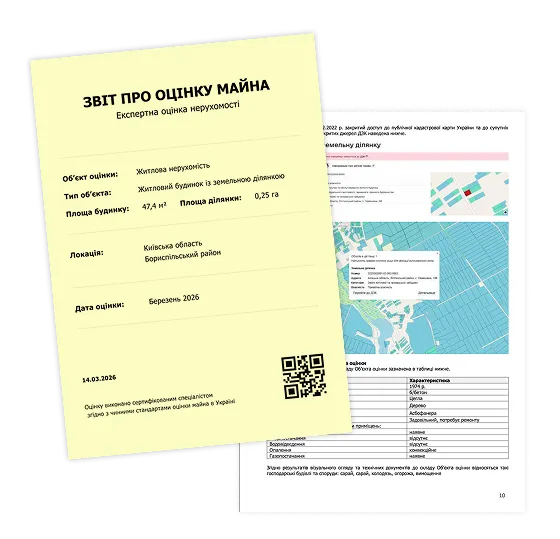 Отримайте офіційний звіт про вартість вашої нерухомості, землі або транспорту всього за 1 день!